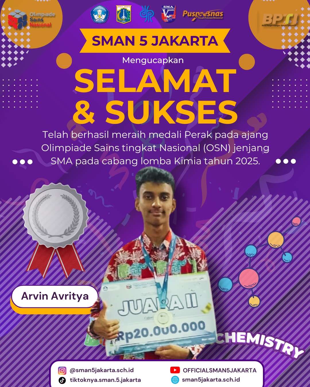 Selamat untuk Arvin meraih Medali Perak Juara II OSN Kimia tingkat Nasional