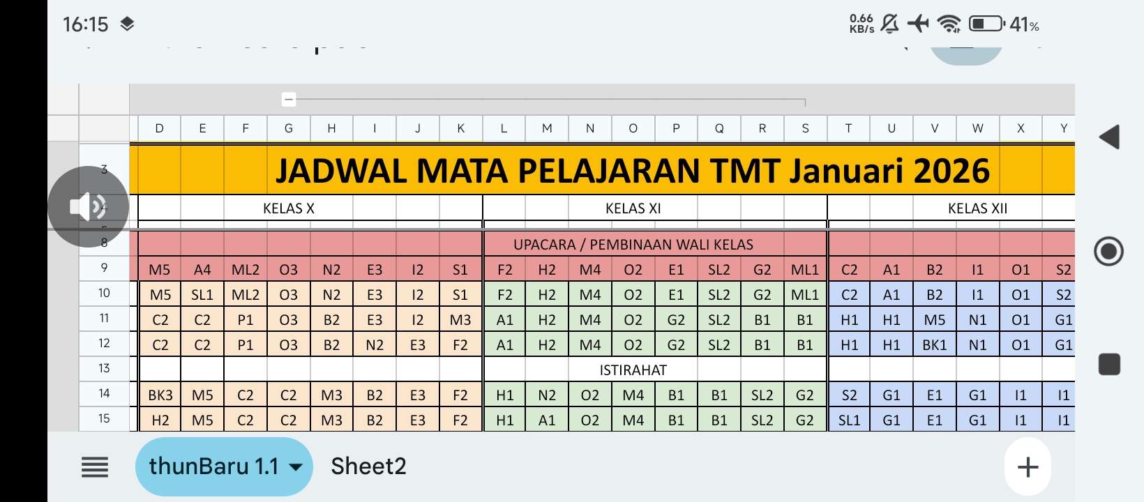 Jadwal mapel tmt 12 januari